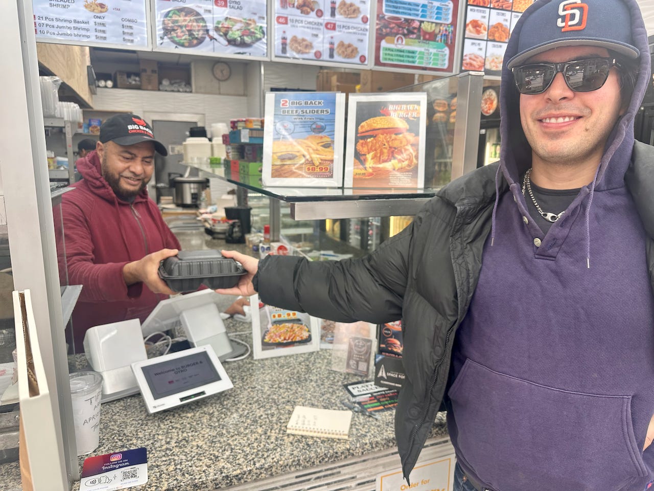 He thought an $8 lunch platter sounded like a good deal—the going rate in the neighborhood is $10, even at the local street carts, he said, and he was spending $20 for a big sandwich at the Italian deli.