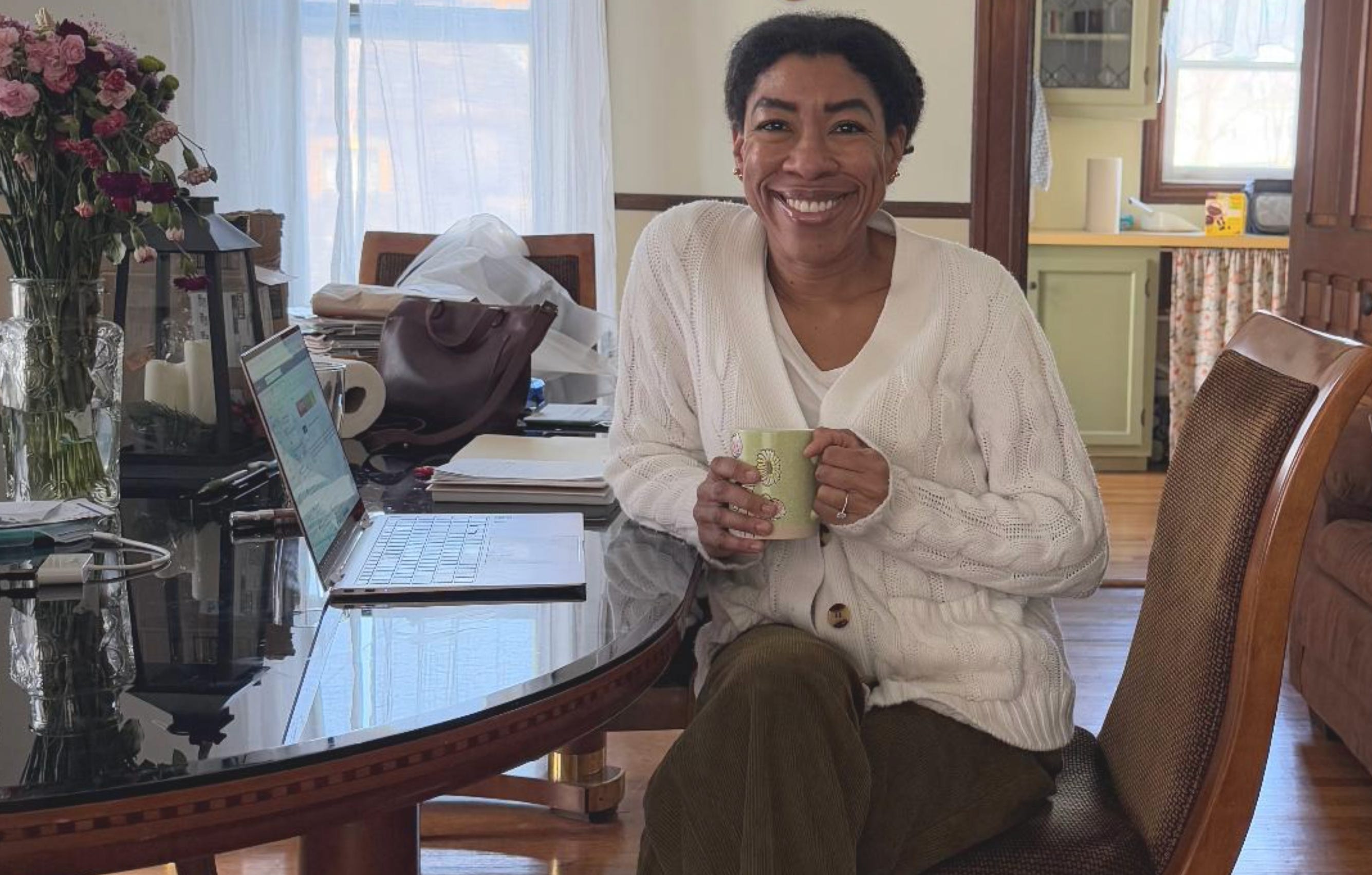 My next Zoom call was with Angela Betancourt, founder of the Betancourt Group, a communications and business strategy firm. She was ready for her day in a dressy cardigan and black watch plaid trousers. And boy, did she have a lot to say about dressing up at home!